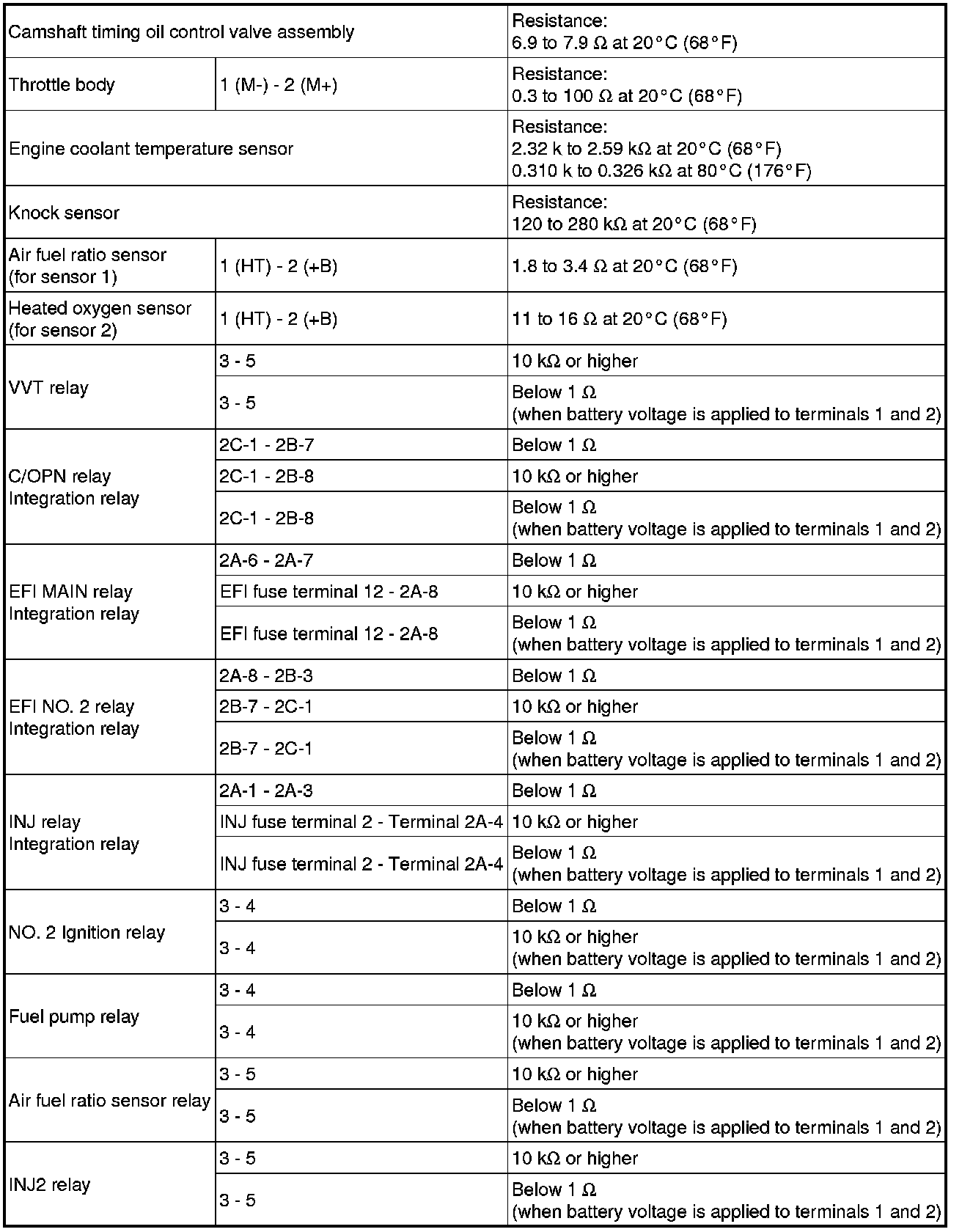 SERVICE SPECIFICATIONS: 1UR-FSE ENGINE CONTROL SYSTEM: SERVICE DATA