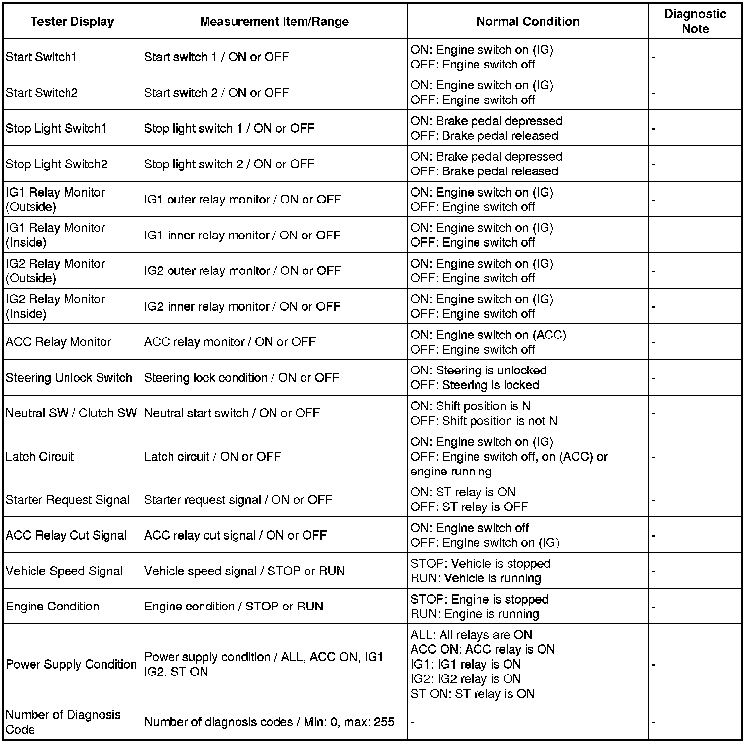 1UR-FSE STARTING: SMART ACCESS SYSTEM WITH PUSH-BUTTON START: DATA LIST / ACTIVE TEST