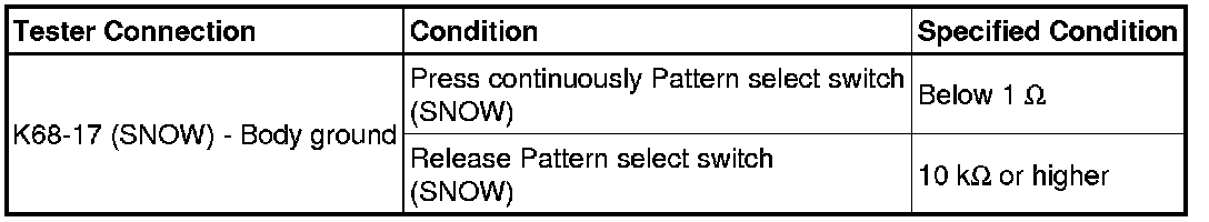AA80E AUTOMATIC TRANSMISSION: AUTOMATIC TRANSMISSION SYSTEM: Pattern Select Switch Snow Mode Circuit