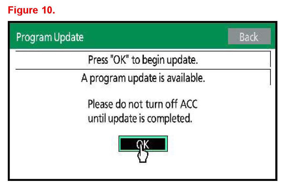 10. After about 1 minute, if the update was successful the display will indicate "Updating complete" at the top of the screen. Select OK to continue.