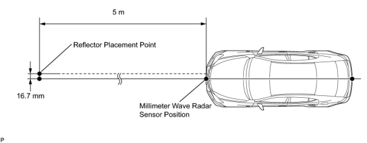 (3) Using a tape measure, measure 16.7 mm (0.66 in.) to the left of the 5 m (16.41 ft.) position. Place the reflector at that position.