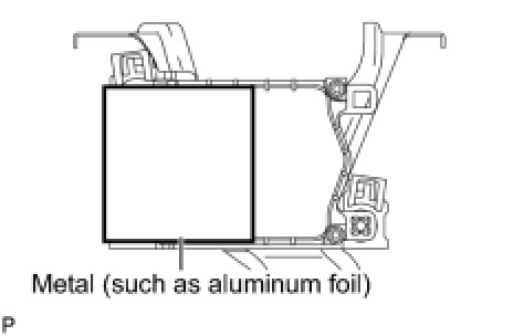 (3) Reset the radar sensor's driving learning values. Prepare a type of metal that can block radio waves, such as aluminum foil. Cover the radar sensor's right half with the metal for 10 seconds.