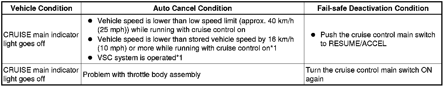 *1: In the constant speed control mode, the stored vehicle speed in the ECM is maintained.