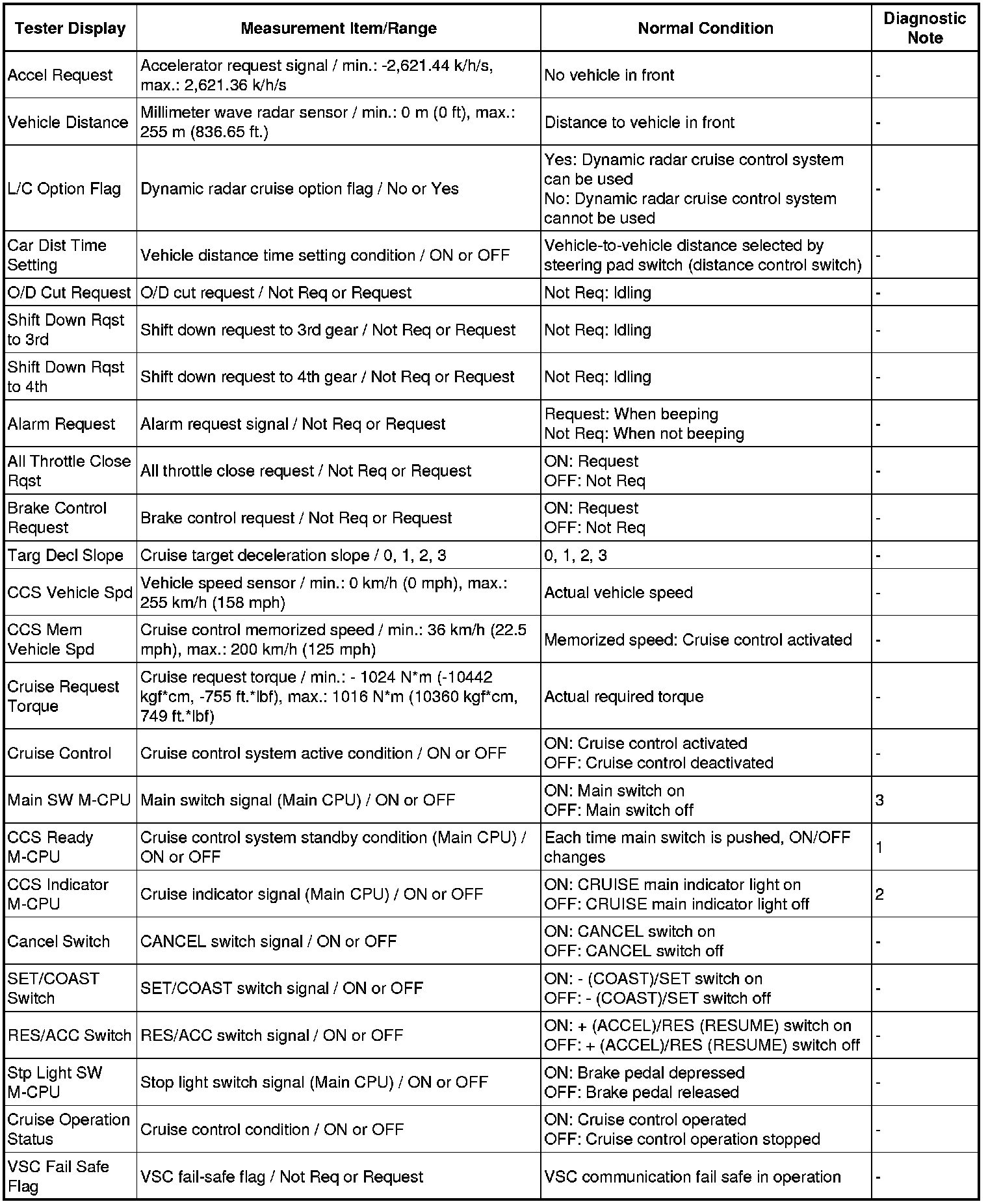 CRUISE CONTROL: DYNAMIC RADAR CRUISE CONTROL SYSTEM: DATA LIST / ACTIVE TEST