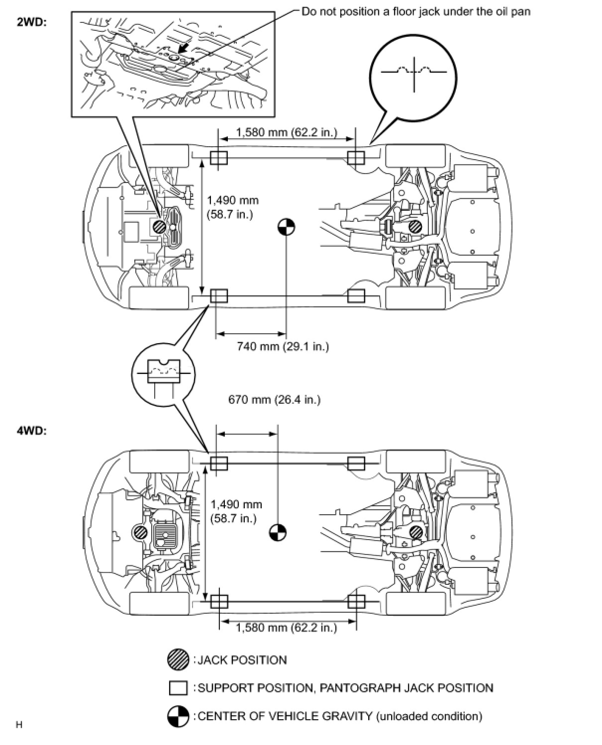 (f) When jacking up only the front wheels or only the rear wheels, place wheel stoppers to both sides of the wheels that contact ground.