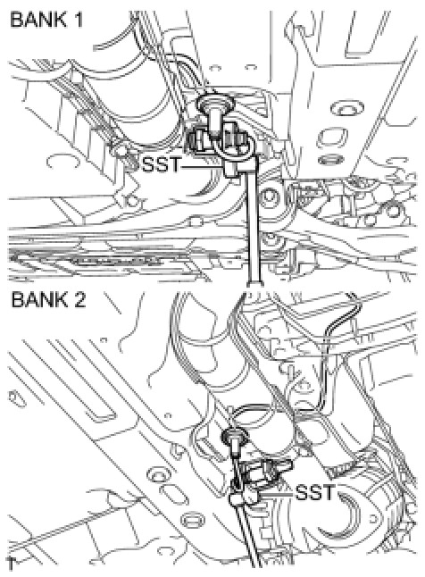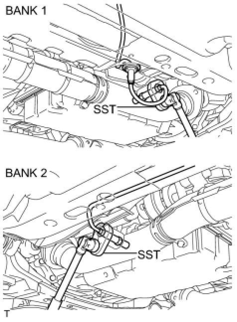 (b) Using the SST, remove the oxygen sensor to the exhaust pipe assembly.