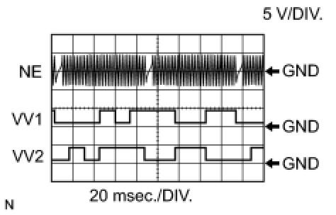 Crankshaft position sensor and VVT sensor for exhaust camshaft::