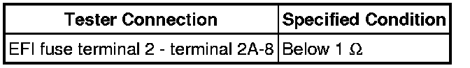 (1) Remove the EFI fuse. Using an ohmmeter, measure the resistance between the terminals.