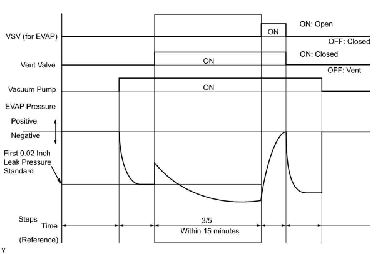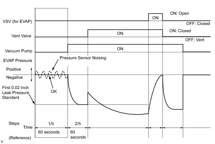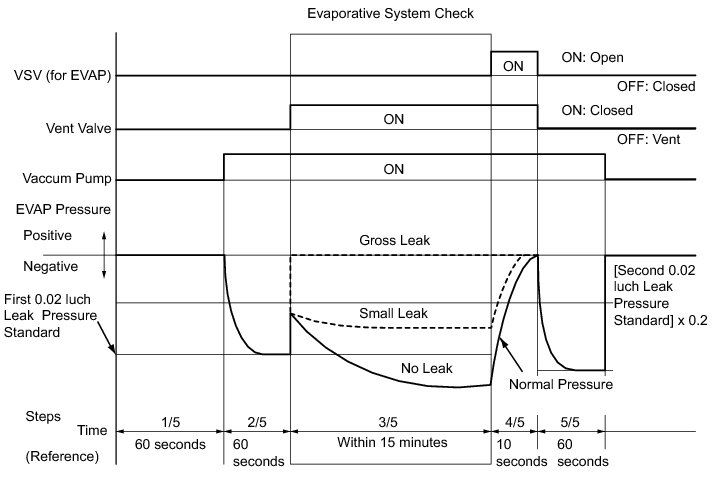 (b) Compare the EVAP pressure in step 3/5 and the second 0.02 inch leak pressure standard (step 5/5).