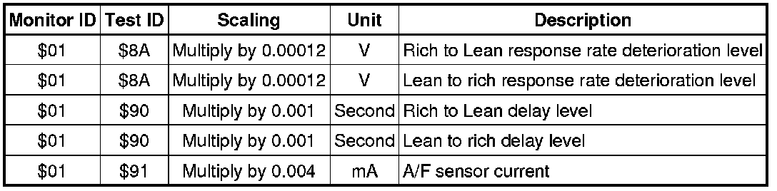 If you use a generic scan tool, multiply the value by the scaling value listed below.