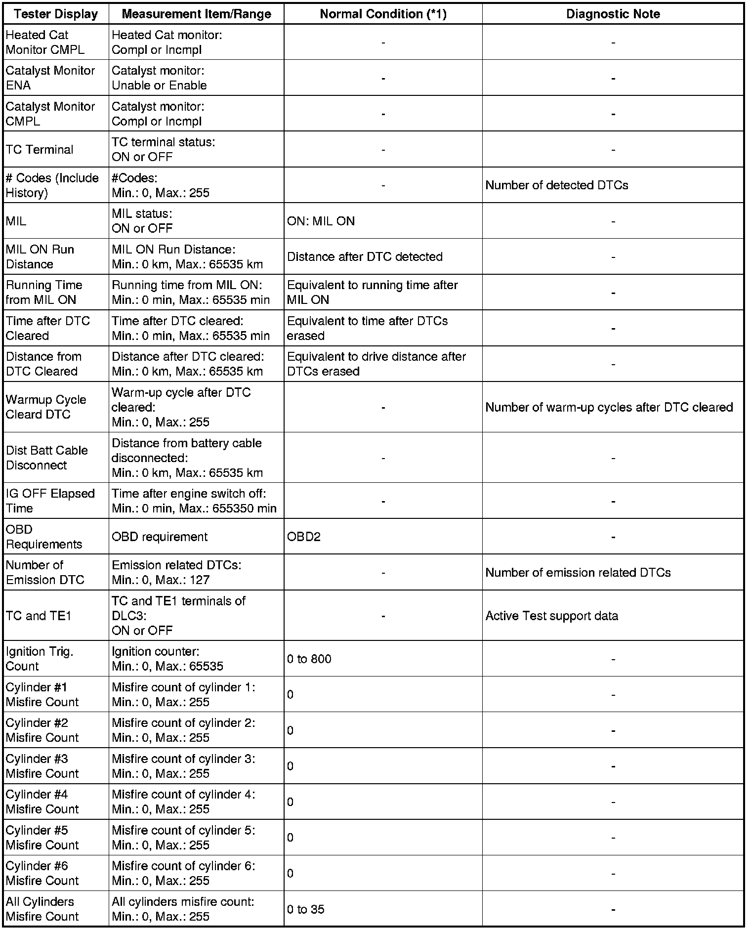 In the table below, the values listed under Normal Condition are reference only. Do not depend solely on these values when determining whether or not a part is faulty.