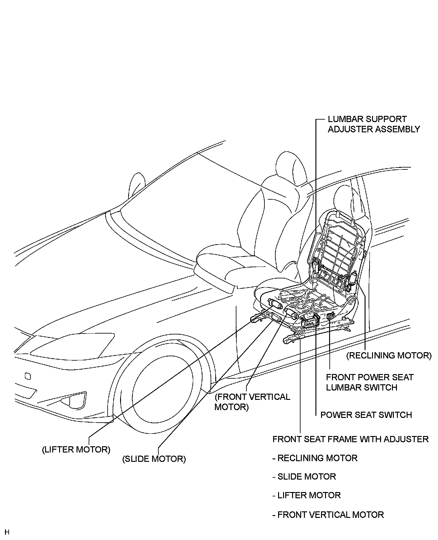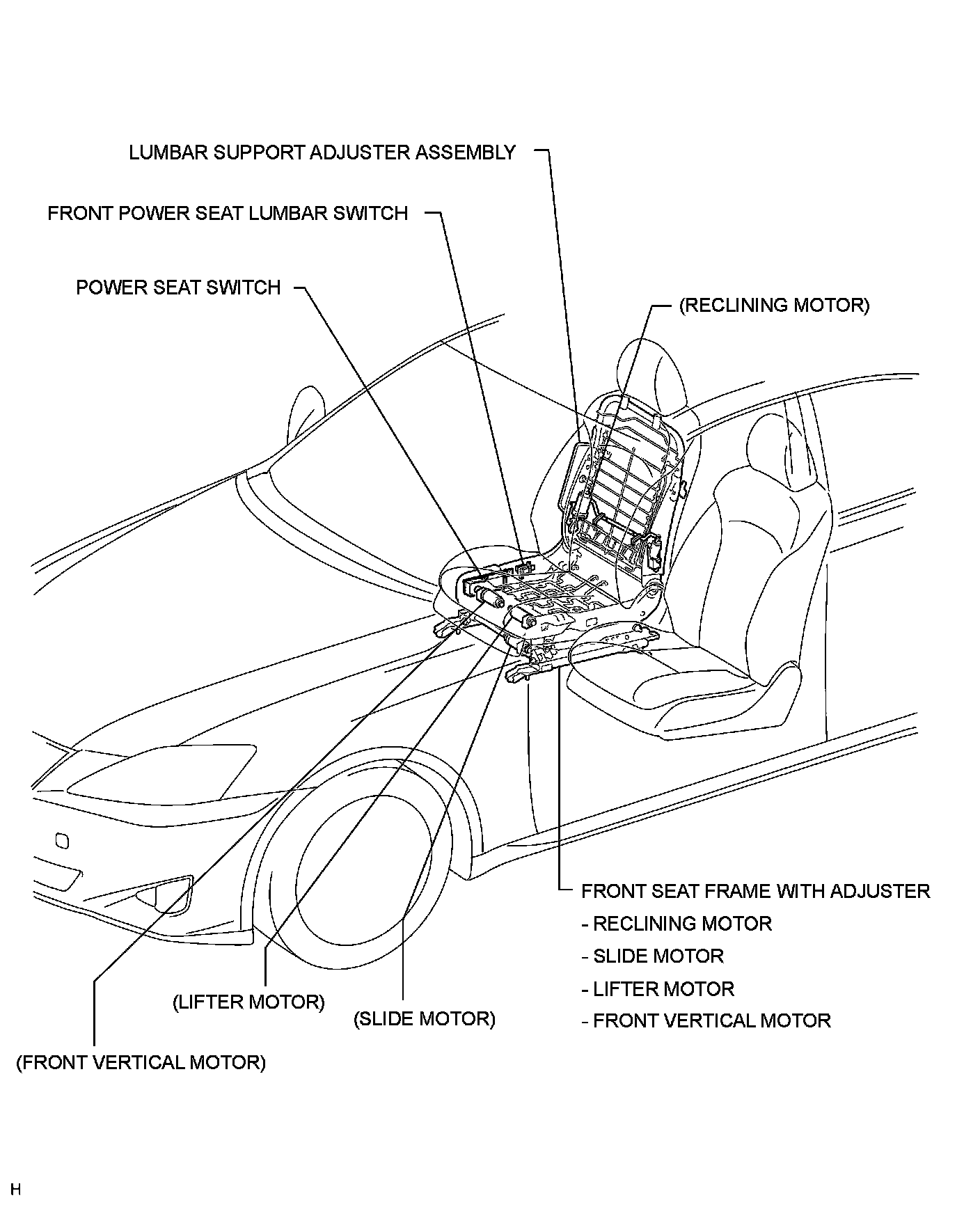 SEAT: FRONT POWER SEAT CONTROL SYSTEM (w/o Seat Position Memory System): PARTS LOCATION