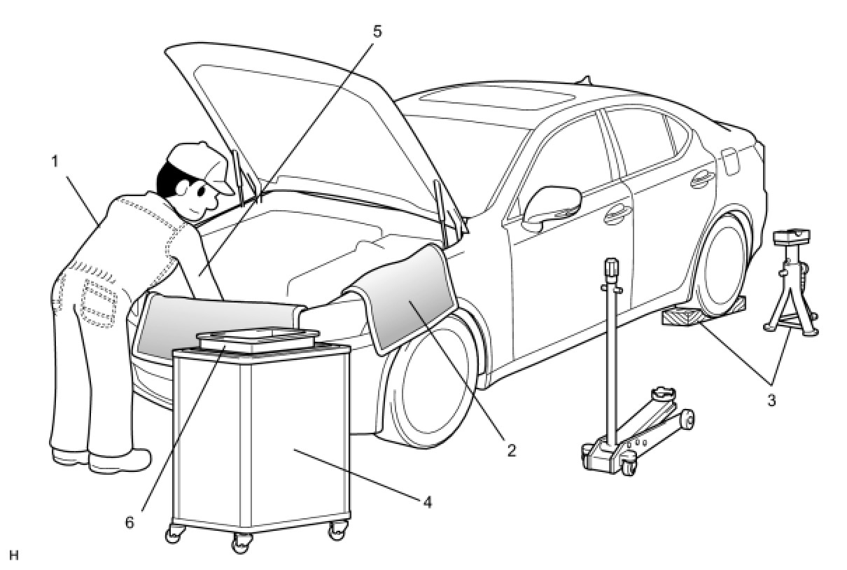 (b) JACKING UP AND SUPPORTING VEHICLE