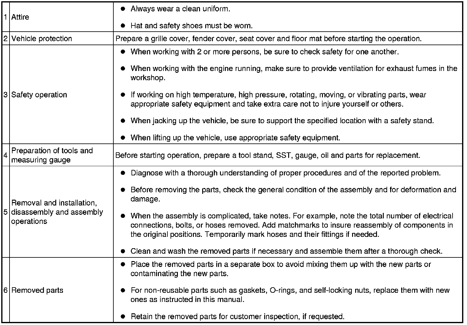 * Failure to carry out the service operations in the correct sequence could cause the SRS to unexpectedly deploy during servicing and lead to serious injury. Furthermore, if a mistake is made when servicing SRS, it is possible that the SRS may fail to operate properly. Before servicing (including removal or installation of parts, inspection or replacement), be sure to read the following section carefully.