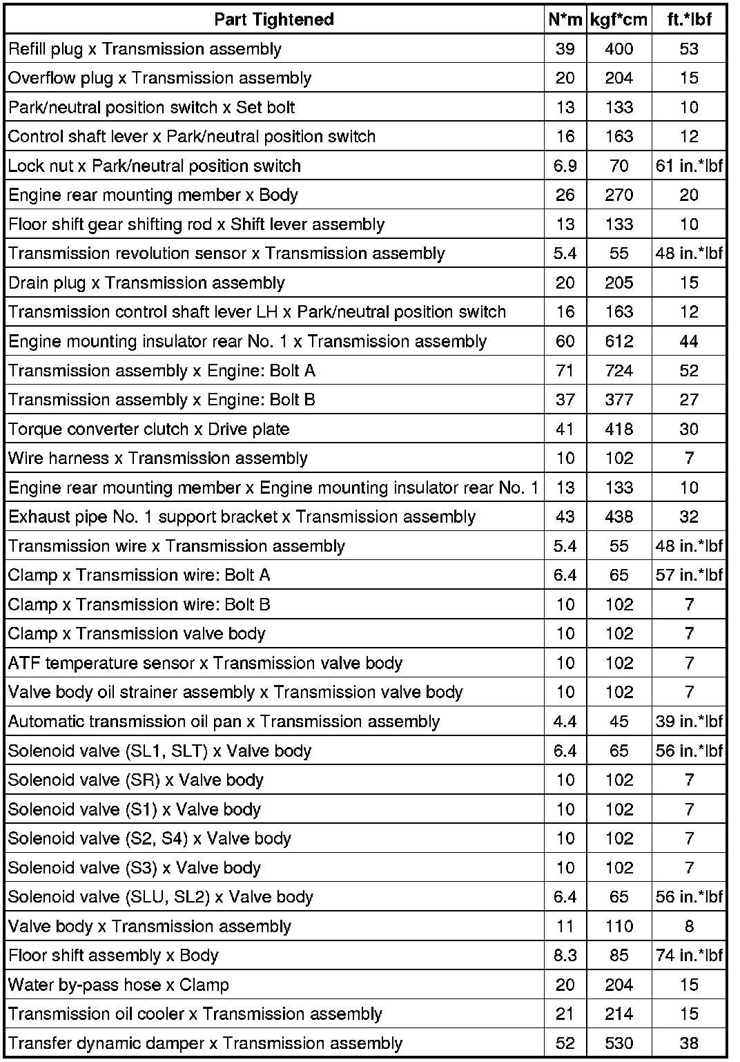 SERVICE SPECIFICATIONS: A760H AUTOMATIC TRANSMISSION: TORQUE SPECIFICATIONS