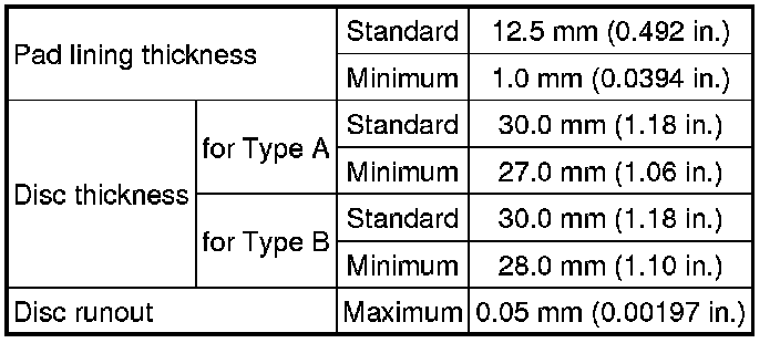 SERVICE SPECIFICATIONS: BRAKE: SERVICE DATA