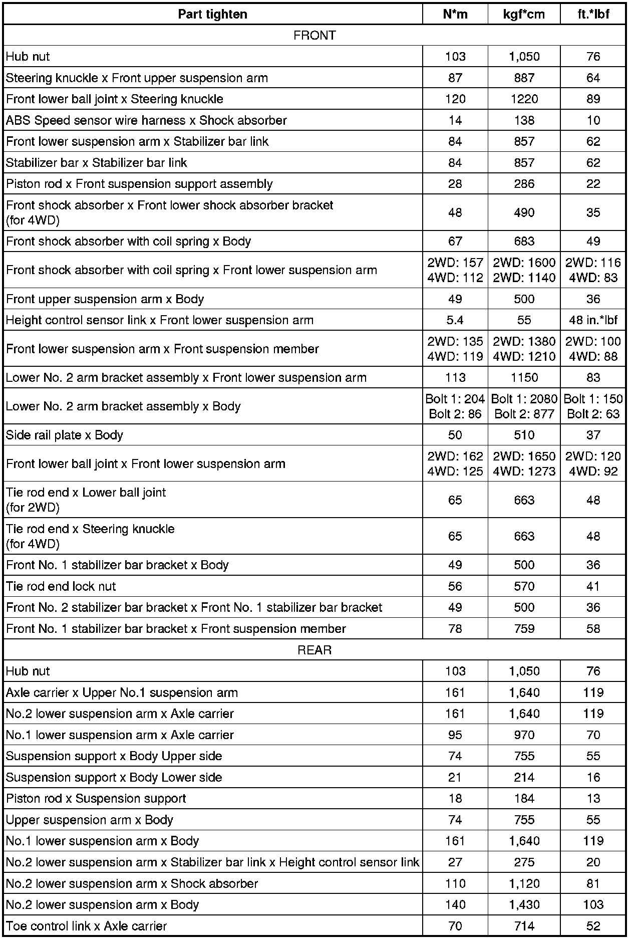 : TORQUE SPECIFICATIONS