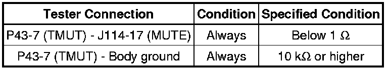 AUDIO / VISUAL: AUDIO AND VISUAL SYSTEM (w/ Navigation System): Mute Signal Circuit between Stereo Component Amplifier and Telematics Transceiver
