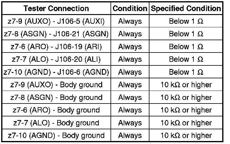 AUDIO / VISUAL: AUDIO AND VISUAL SYSTEM (w/ Navigation System): Sound Signal Circuit between Radio Receiver and Stereo Jack Adapter