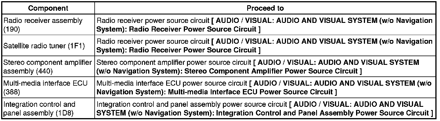 * For details of the connectors, refer to Terminals of ECU Audio And Visual System (w/o Navigation System).