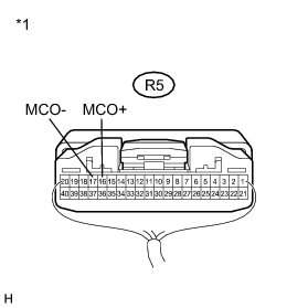 (e) Connect an oscilloscope to terminals 16 (MCO+) and 17 (MCO-) of the R5 map light assembly connector.
