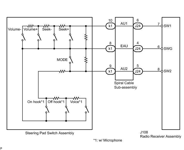 If there is an open in the circuit, the audio system cannot be operated using the steering pad switch assembly.