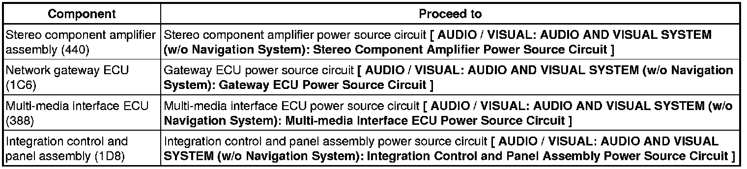 * For details of the connectors, refer to Terminals of ECU Audio And Visual System (w/o Navigation System).