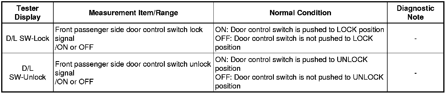 (a) Check the Data List to ensure proper function of the front passenger door lock switch.