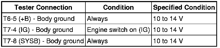 The front power seat switch RH does not allow the restore operation of the power seat when the system detects that the voltage of terminal SYSB is less than 8.0 +- 0.5 V for 30 msec. or is more than 10 +- 0.5 V for 30 msec.
