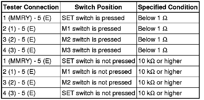 NG -- CHECK HARNESS AND CONNECTOR (OUTER MIRROR CONTROL ECU - SEAT MEMORY SWITCH, BODY GROUND)