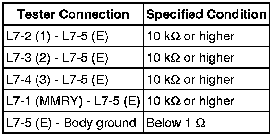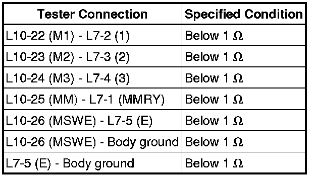 4. CHECK HARNESS AND CONNECTOR (OUTER MIRROR CONTROL ECU - SEAT MEMORY SWITCH, BODY GROUND)