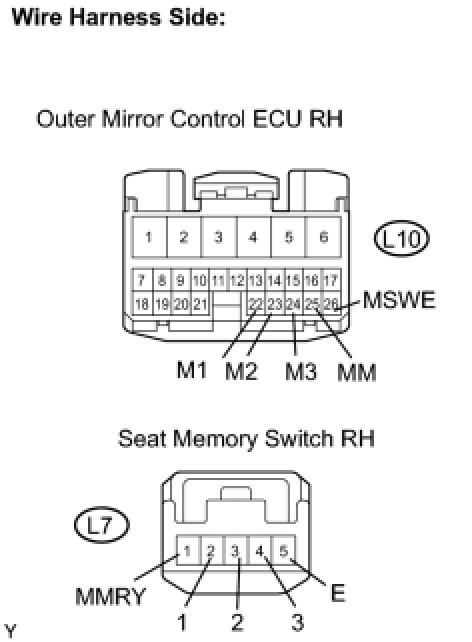 3. CHECK HARNESS AND CONNECTOR (SEAT MEMORY SWITCH RH CIRCUIT)