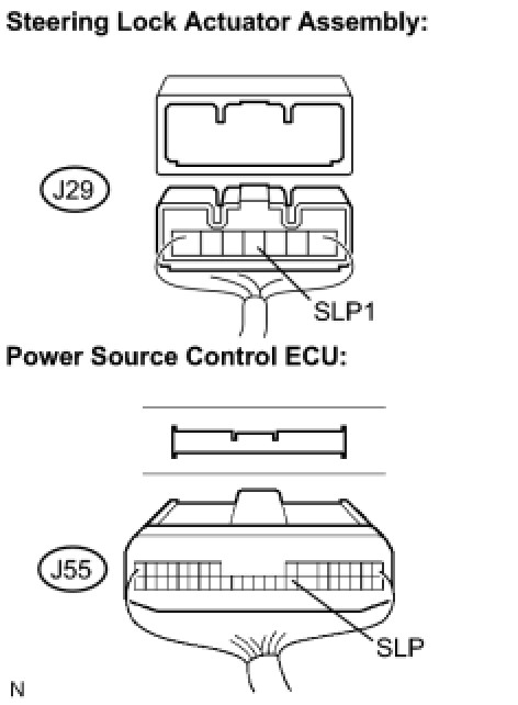 2. CHECK HARNESS AND CONNECTOR (STEERING LOCK ACTUATOR ASSEMBLY - POWER SOURCE CONTROL ECU)