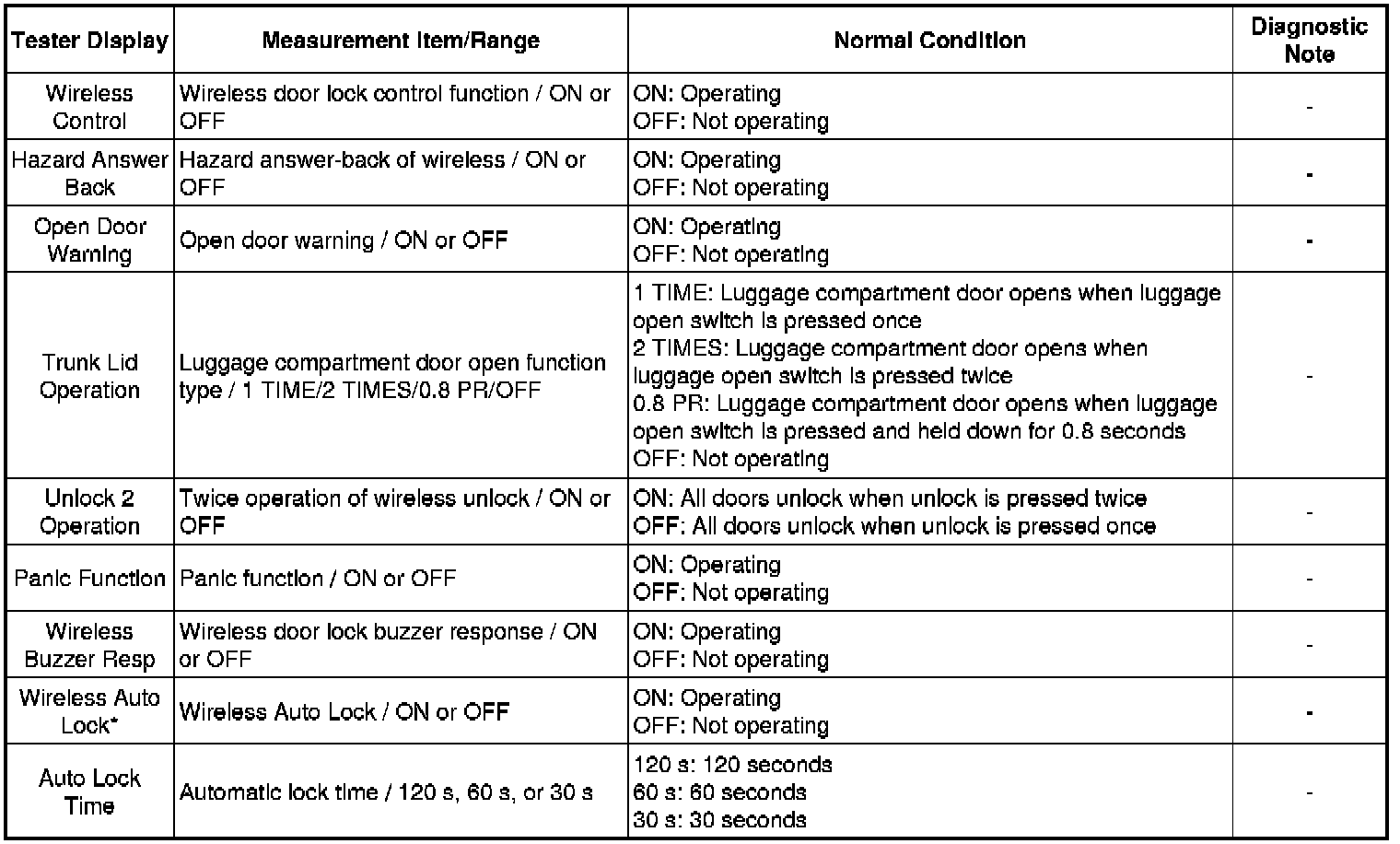 DOOR LOCK: WIRELESS DOOR LOCK CONTROL SYSTEM: DATA LIST / ACTIVE TEST