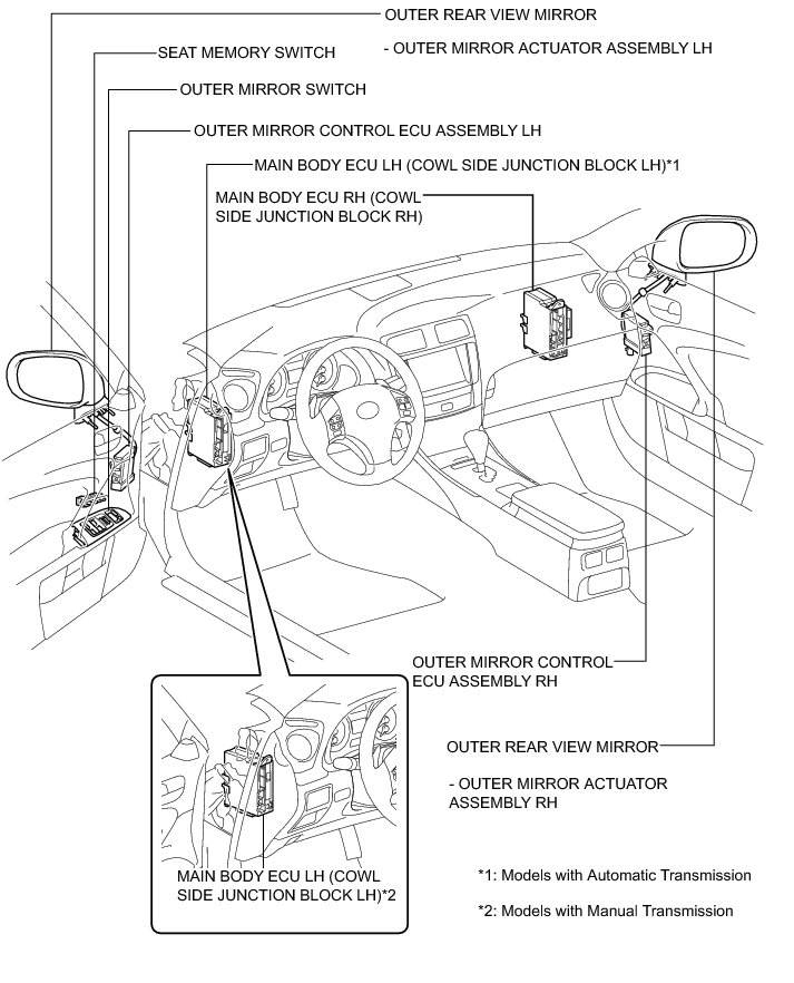 MIRROR (EXT): POWER MIRROR CONTROL SYSTEM (W/ Memory): PARTS LOCATION
