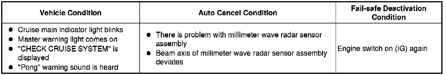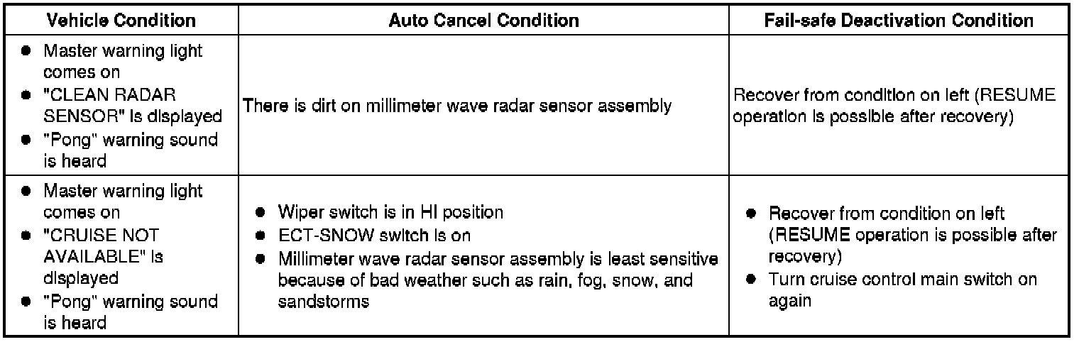 CRUISE CONTROL: DYNAMIC RADAR CRUISE CONTROL SYSTEM: FAIL-SAFE CHART