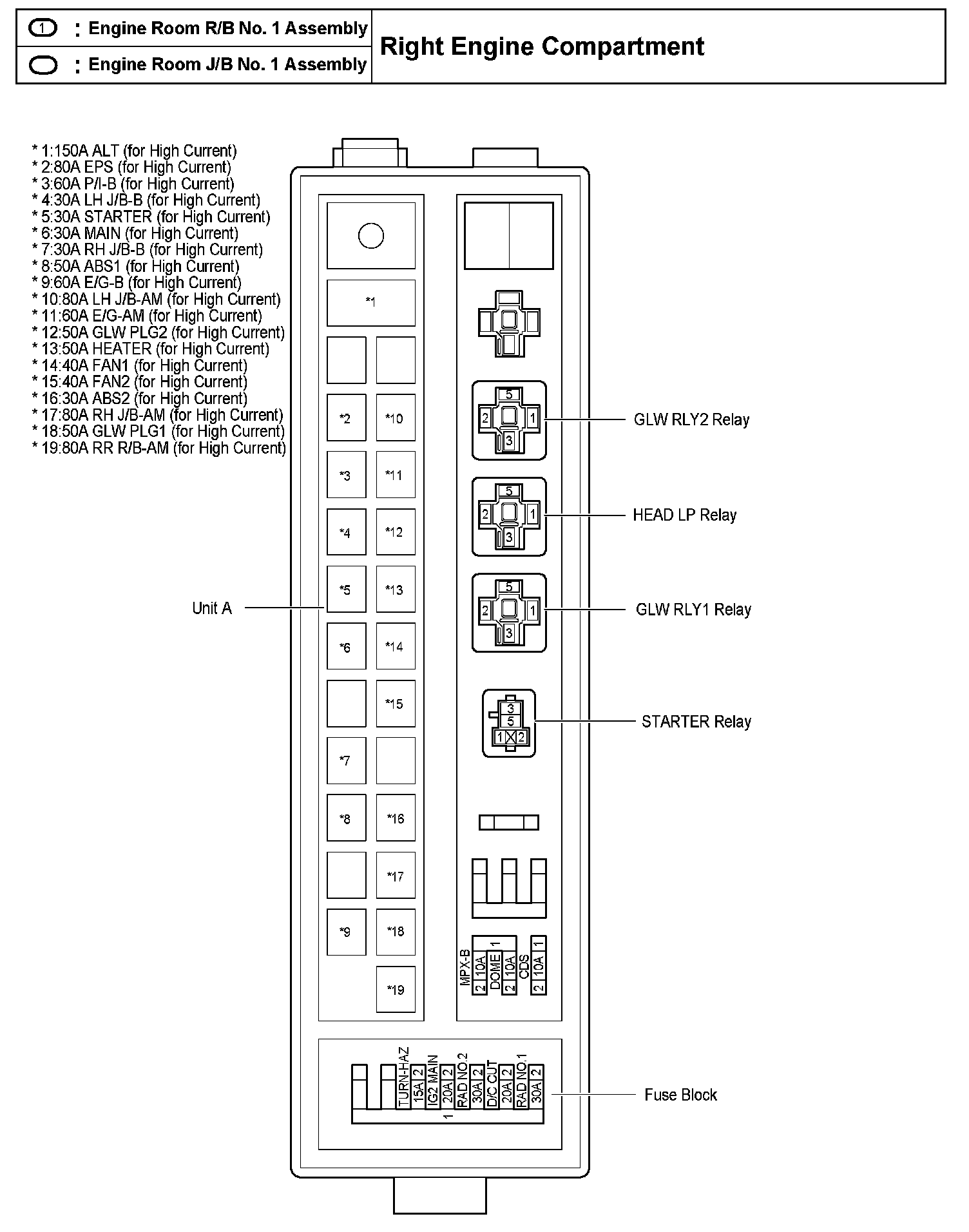 Engine Room R/B No.1 Assembly / Engine Room J/B No.1 Assembly - Right Engine Compartment: