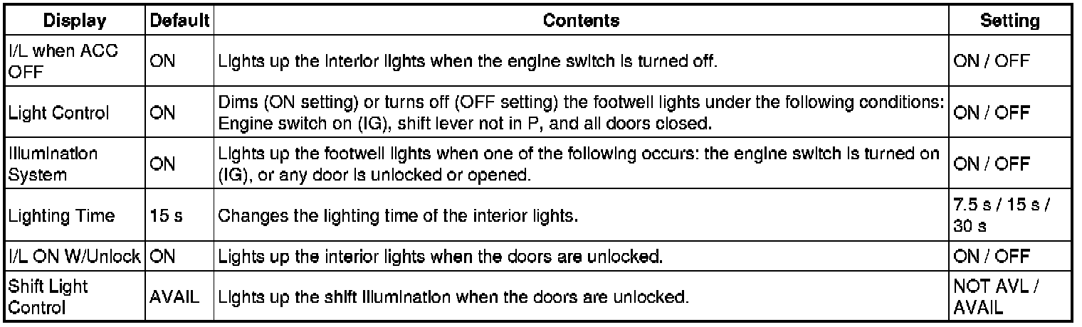 LIGHTING (INT): LIGHTING SYSTEM: CUSTOMIZE PARAMETERS