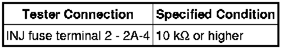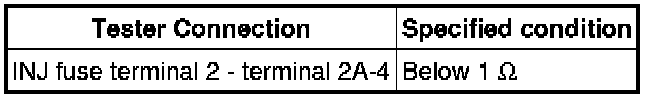 (1) Remove the INJ fuse. Using an ohmmeter, measure the resistance between the terminals.