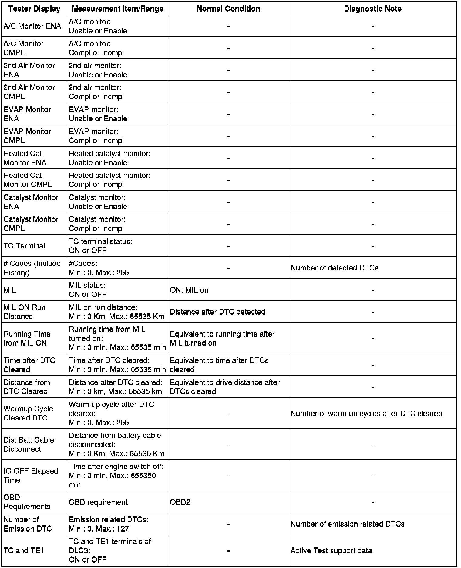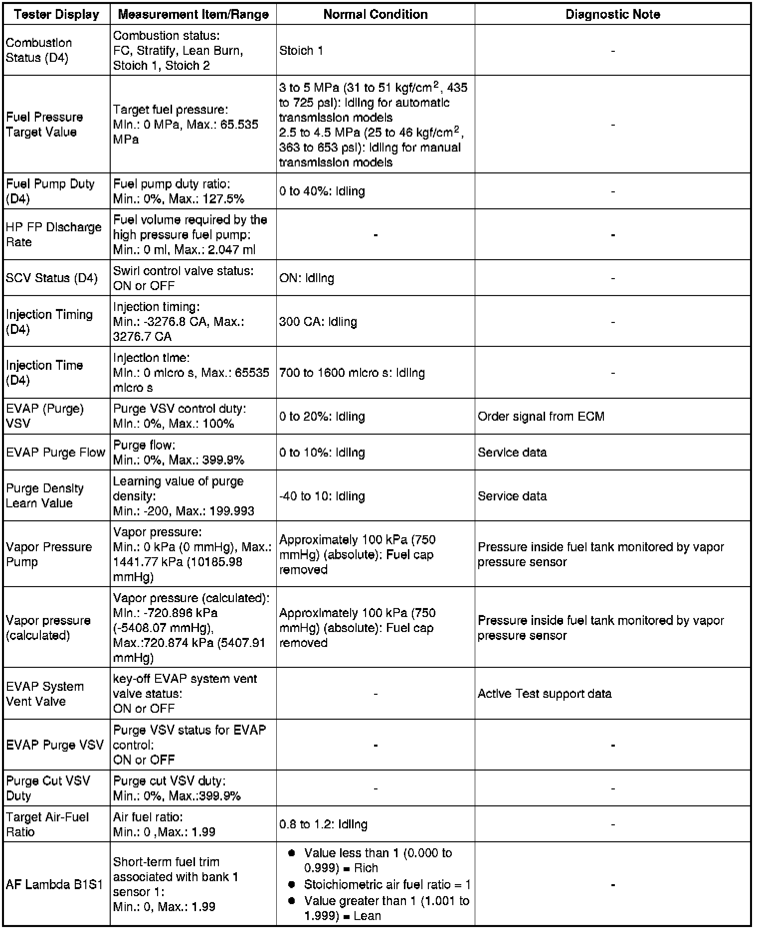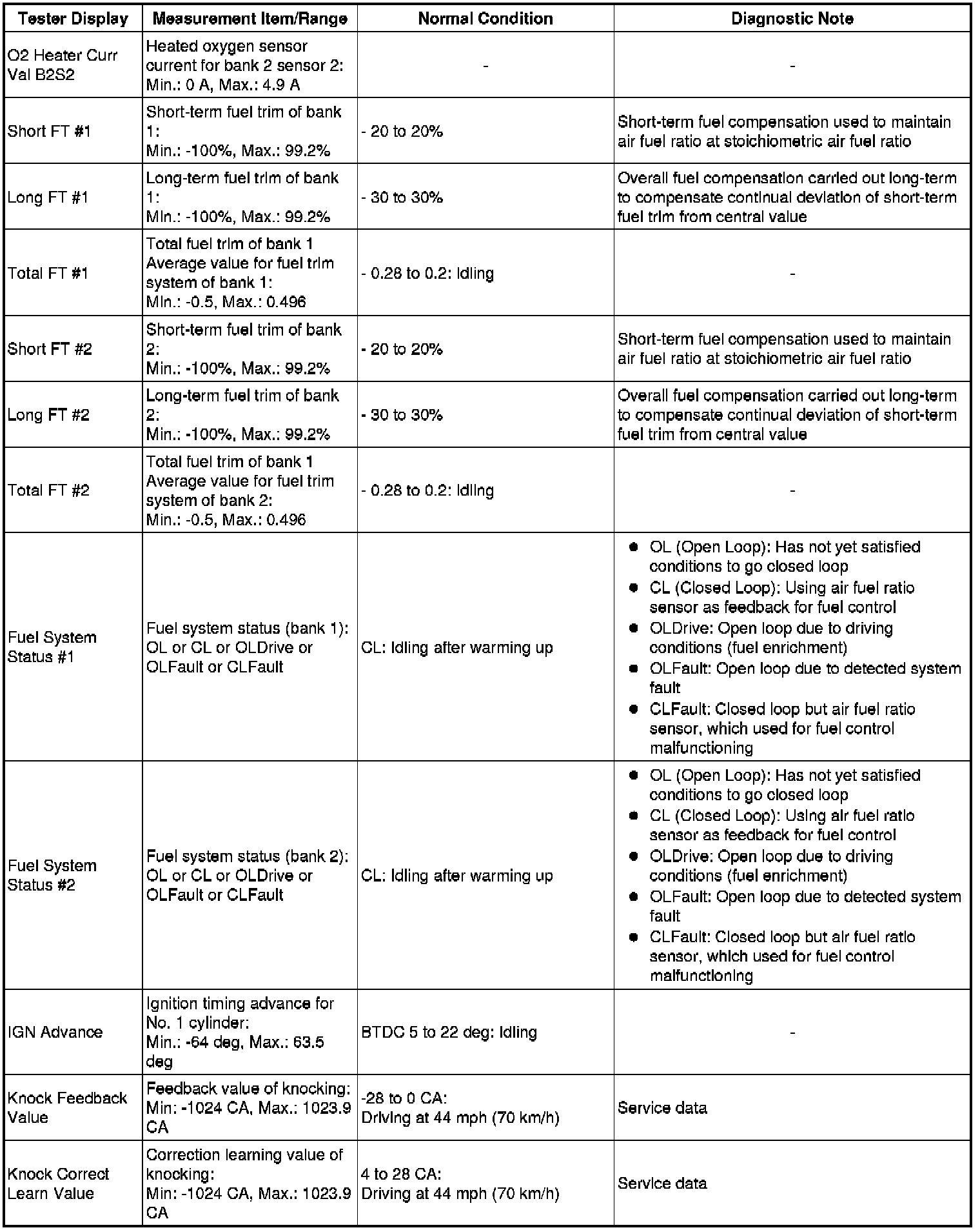 Using the Techstream to read the Data List allows the values or states of switches, sensors, actuators and other items to be read without removing any parts. This non-intrusive inspection can be very useful because intermittent conditions or signals may be discovered before parts or wiring is disturbed. Reading the Data List information early in troubleshooting is one way to save diagnostic time.