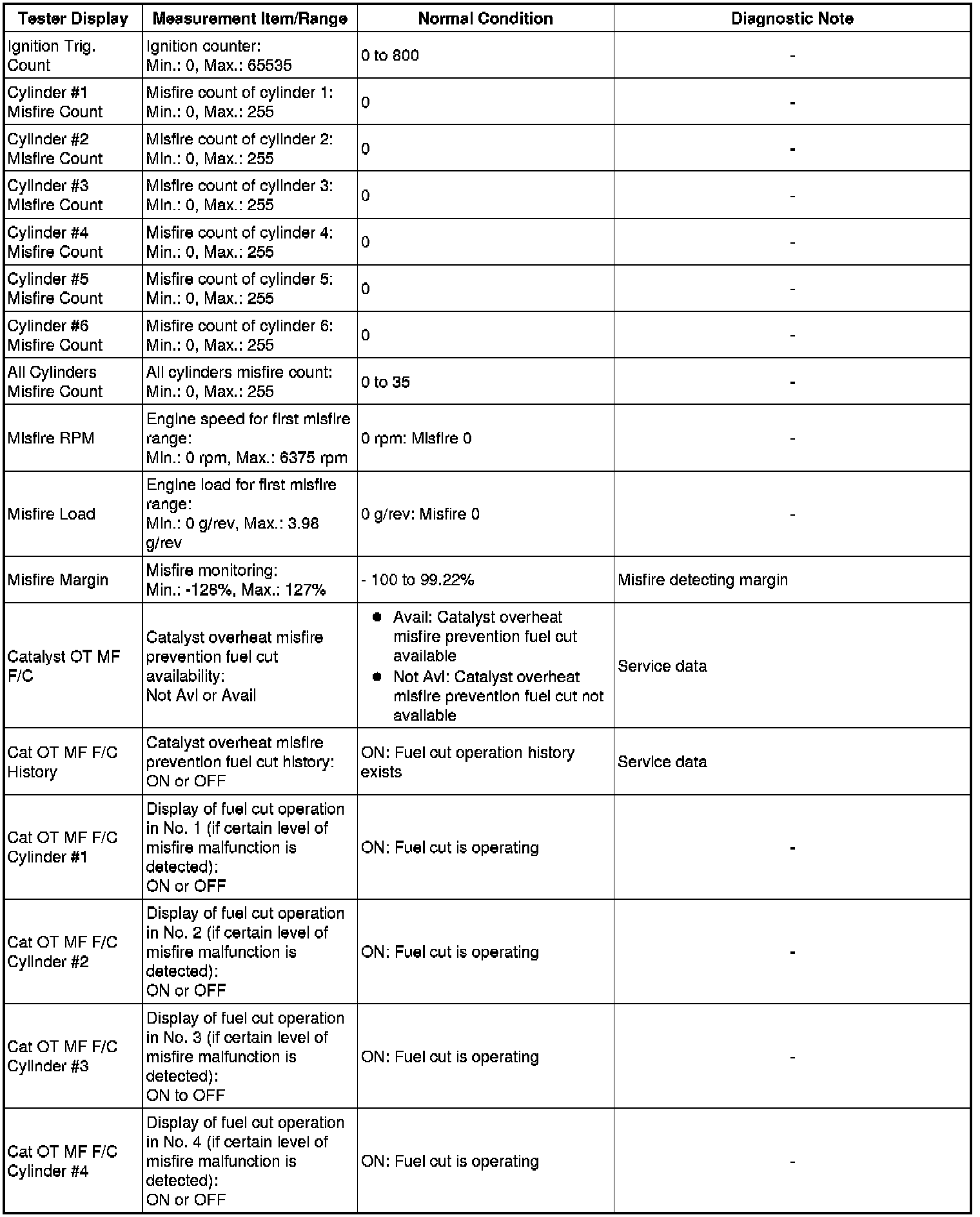 * Monitor the engine speed (Engine Speed of Cyl #1 to #6, Av Engine Speed of All Cyl) displayed on the Techstream.
