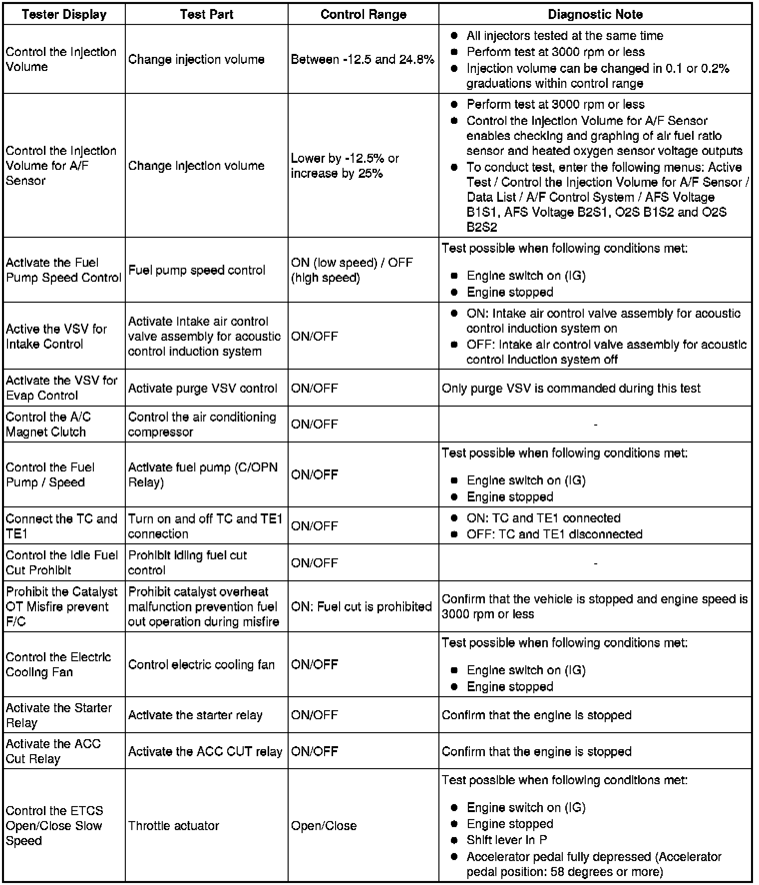 Using the Techstream to perform Active Tests allows relays, VSVs, actuators and other items to be operated without removing any parts. This non-intrusive functional inspection can be very useful because intermittent operation may be discovered before parts or wiring is disturbed. Performing Active Tests early in troubleshooting is one way to save diagnostic time. Data List information can be displayed while performing Active Tests.