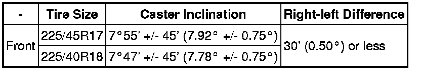 SPECIFICATIONS: ALIGNMENT / HANDLING DIAGNOSIS: SERVICE DATA