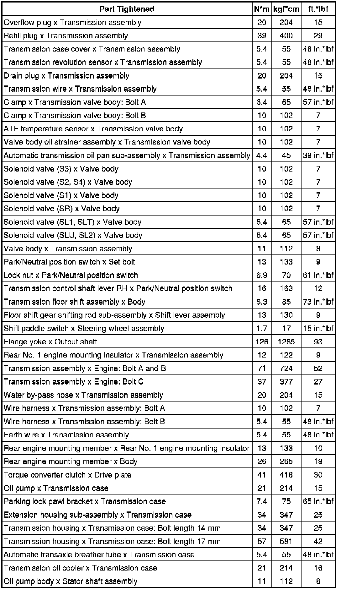 SPECIFICATIONS: A760E AUTOMATIC TRANSMISSION / TRANSAXLE: TORQUE SPECIFICATIONS