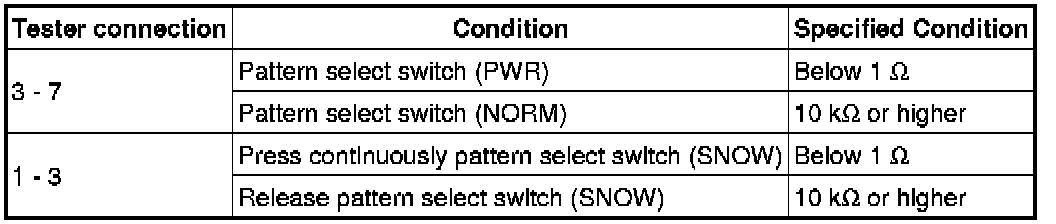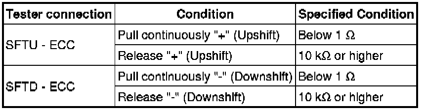 * All shift point values indicated in the above tables are actual values. Therefore, if checking a shift point with a chassis dynamometer, keep in mind that there is a range of error in the chassis dynamometer indication.