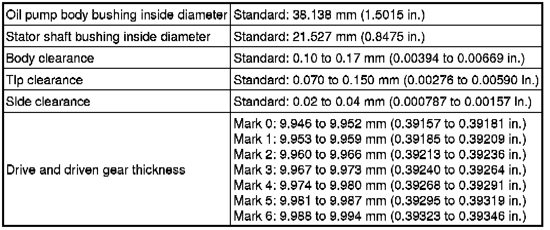 SPECIFICATIONS: A960E AUTOMATIC TRANSMISSION / TRANSAXLE: SERVICE DATA