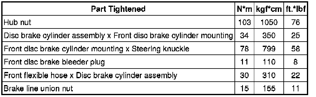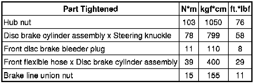 SPECIFICATIONS: BRAKE (FRONT): TORQUE SPECIFICATIONS