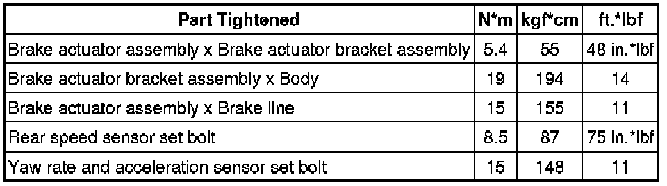 SPECIFICATIONS: BRAKE CONTROL / DYNAMIC CONTROL SYSTEMS: TORQUE SPECIFICATIONS