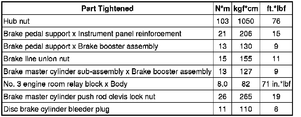 SPECIFICATIONS: BRAKE SYSTEM (OTHER): TORQUE SPECIFICATIONS