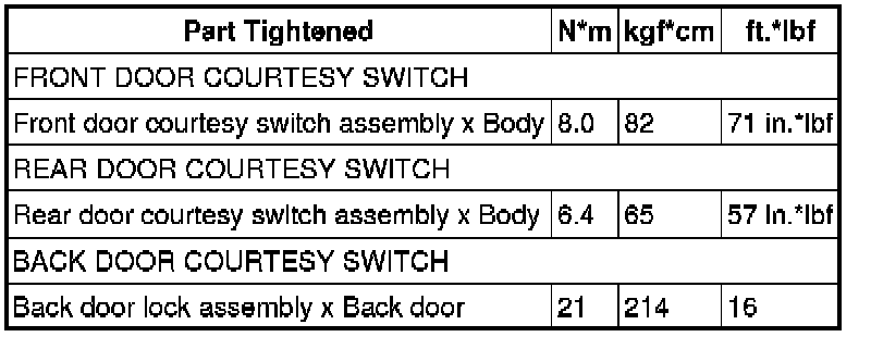 SPECIFICATIONS: LIGHTING (INT): TORQUE SPECIFICATIONS